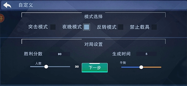 7、在自定义功能里,玩家还能够对游戏的模式、分数、时间等进行自定义设置。