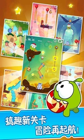 割绳子2是一款由俄罗斯zeptolab公司开发的休闲益智游戏,是割绳子系列的正统续作。这款游戏继承了前作的清新画风和趣味玩法,并在此基础上进行了创新和丰富。玩家需要通过切断糖果的绳子、点破气泡或按触吹气装置等方式,让糖果准确地落入小怪物omnom的嘴里。游戏不仅考验玩家的逻辑思维和观察力,还锻炼了玩家的操作技巧和耐心。