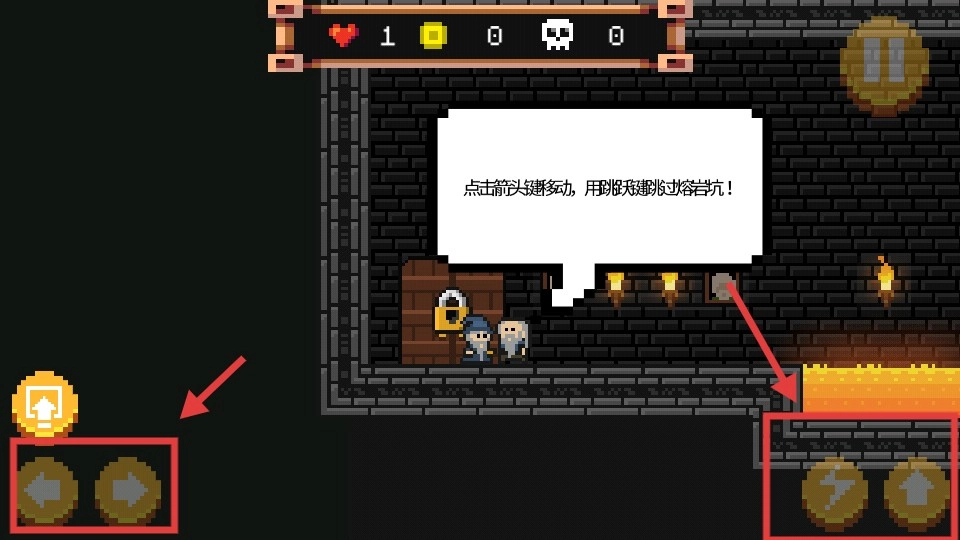 跨越岩浆,到达对岸与角色进行互动。