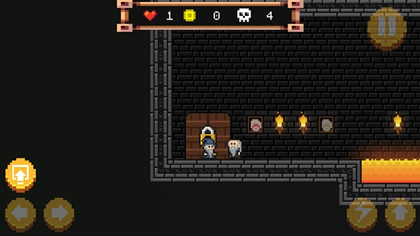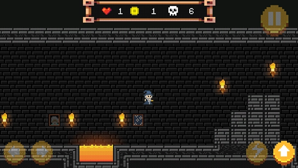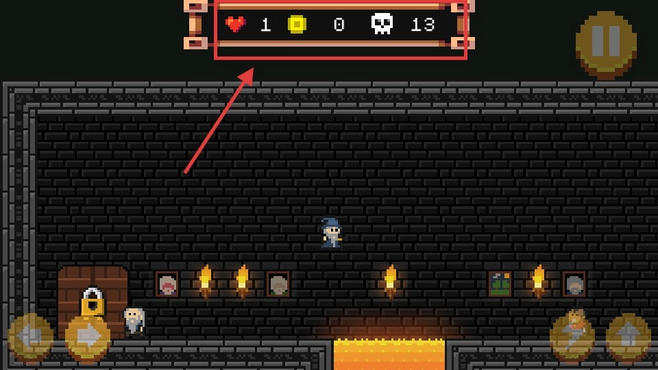 在画面上方能看到代表血量的爱心、象征金币的黄色方块,以及显示死亡次数的骷髅图案。