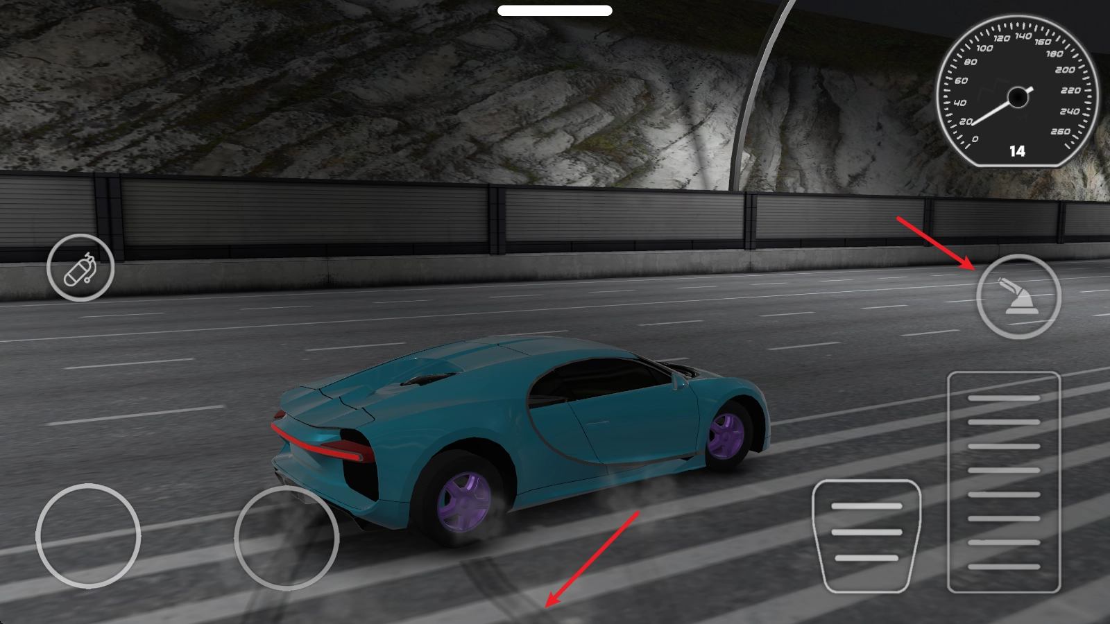 右侧踏板上的按钮是手刹,转向时按住它就能实现漂移。
