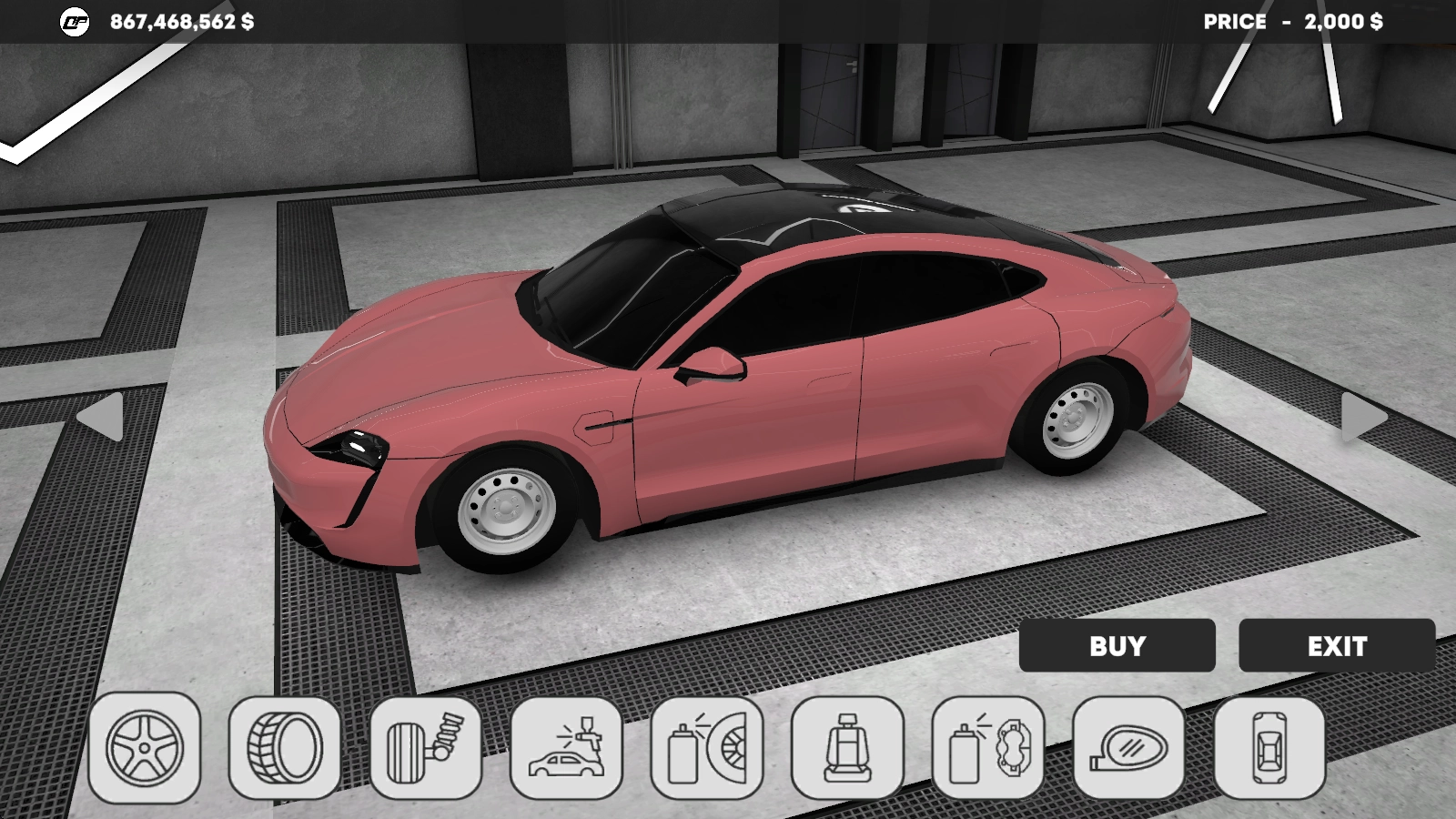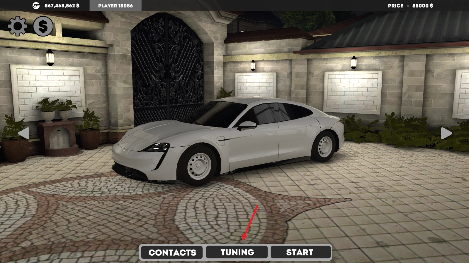 首先挑选一辆心仪的汽车,确定购买后就会出现tuning按钮,点击该按钮即可进入相关界面。