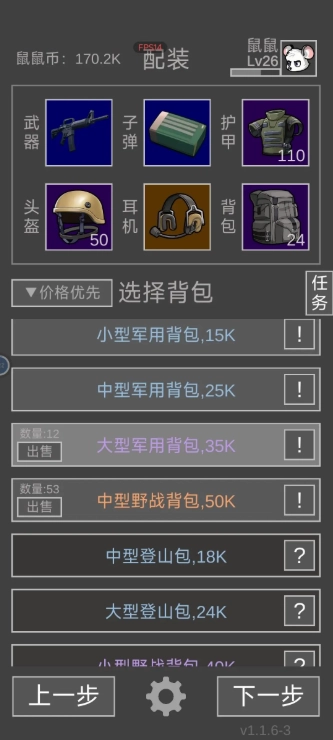 耳机、手雷、医疗用品这三样,一定要选最好的,这部分预算绝对不能省。耳机能帮你更清楚地定位敌人位置;手雷在队友阵亡后能有效清理战场,毕竟没了队友支援,就算你穿六头六甲也可能被人机淘汰。背包选军用背包就行,小号、中号、大号都可以,但千万别选登山包——登山包横向只有三格,装大物件特别不方便。