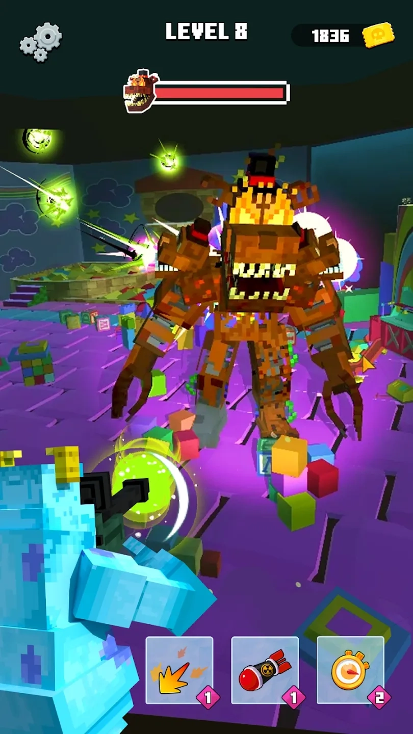多样化的武器系统:解锁并升级多种武器,像激光枪、火箭筒、冰冻射线等都包含在内,每种武器都具备独特效果与适用场景,使战斗更具多样性。