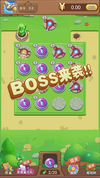 5、每一关的末尾都会出现一个BOSS,它的血量非常厚,赶紧合成并升级你的炮塔吧。