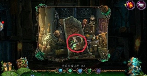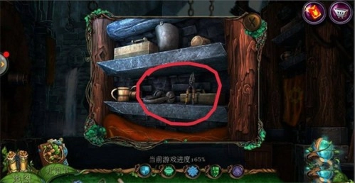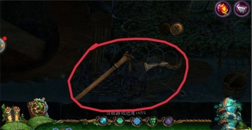 8、点击左侧的齿轮,使用【钳子】剪断铁丝;清理干净所有卡住轮子的废弃物;先找到【锯子】锯断木棍;接着找到【钩子】勾出树叶里的【锥子】;将【锥子】放置在石头堆中,最后用【锤子】敲击,移开石堆;完成游戏并获取【起重器】。