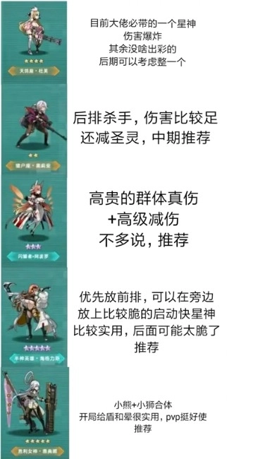 拥有高输出、高生存能力、范围攻击和控制技能的强大角色。她能适应各种阵容,为团队提供全面的支持。在游戏中的表现堪称“万金油”,无论是单独作战还是团队合作,都能发挥出惊人的实力。莉莉丝:一个拥有优秀治疗和辅助能力的同时也能提供可观伤害输出的角色。她特别适合用于需要高度治疗和辅助的阵容中。在辅助角色中,她的实力无疑是顶尖的,同时还能为团队提供一定的输出支持。