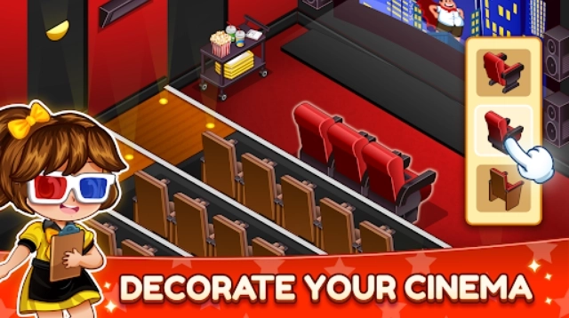 装饰和翻新你的影院,吸引更多顾客。选择时尚的家具、影院座椅和装饰品。让每个影院都独一无二,提升顾客的观影体验!