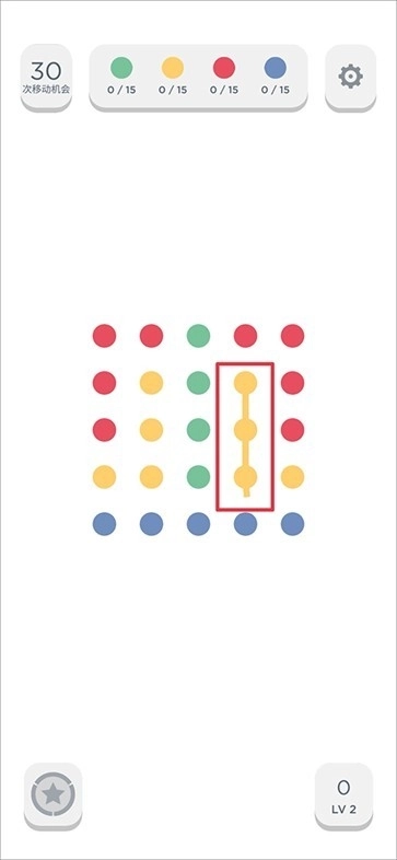 1、进入游戏后,每个关卡都设有通关要求,比如需要在30步之内消除规定数目的点点。