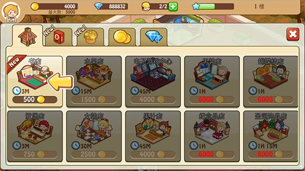 开心商店怎么建第二层?