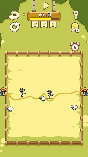 2.留意游戏关卡里羊群与狼群的分布情况,通过思考找出最理想的画线路径。