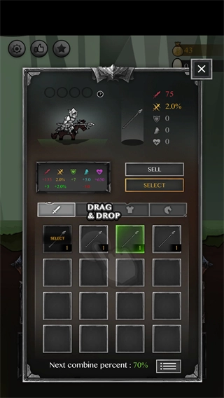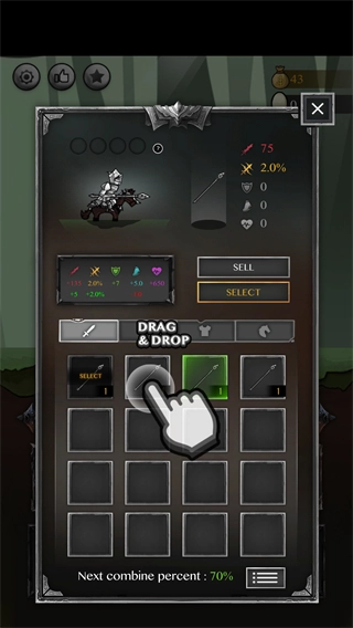 4、装备升级的方式十分简单,运用合成玩法,只要把相同的武器拖拽到一起,就能完成合成与升级。