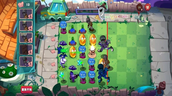 1、僵尸会顺着固定路线朝玩家的家园移动,有一些僵尸能够改变行进方向,玩家需要提前做好预判并对植物的布局进行调整。