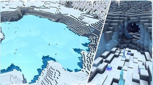 冰原场景的搭建要采用“强化冰雪块”,普通冰雪块的承重能力不够,容易造成建筑坍塌。