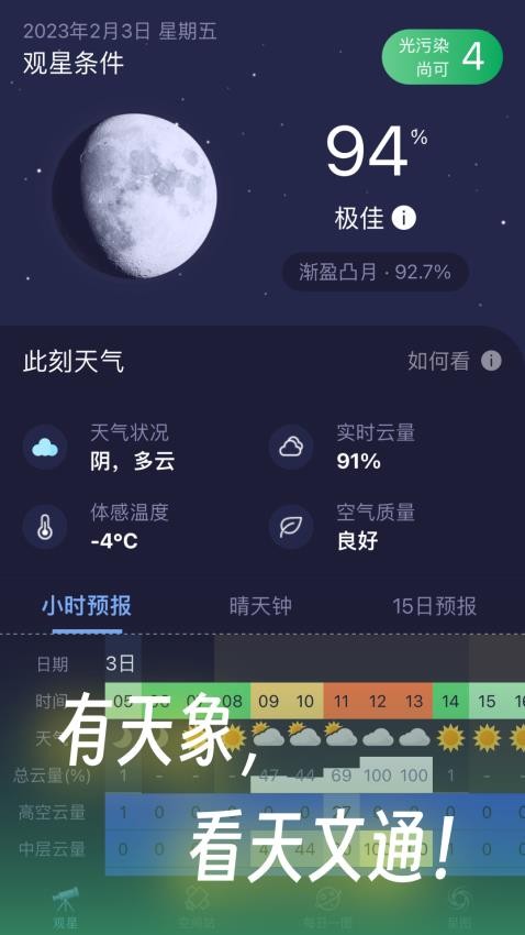 3、让你知道当前是否适合观星,通过软件就可以找到合适的观星时间;
