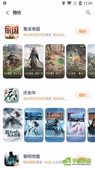 5、点击首页的“预约”选项,就能查看各类即将发布的首发游戏。