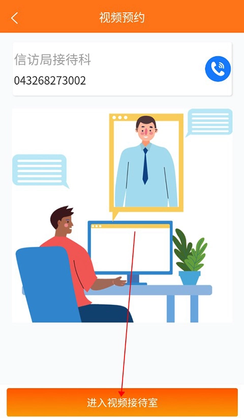 第三步:确定类型后,点击页面下方的【进入视频接待室】按钮,系统会自动跳转到专属的线上接待空间。