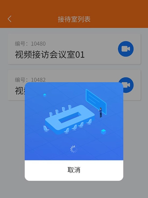 第四步:挑选空闲的接待室并点击进入,稍作等待工作人员接入后,就能开启高清实时视频沟通,整个过程都经过加密处理,以保障隐私安全。