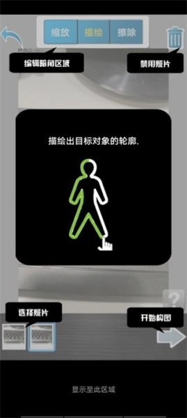 3、拍摄完成后进入照片制作环节,玩家先轻点屏幕进入涂抹阶段,把需要克隆的主体圈出来,主要勾勒轮廓即可;涂选时可用两指伸缩来放大或缩小图片。玩家拍摄的第一张照片是克隆主体照片,无法进行编辑,其余照片只需涂抹圈出想要克隆的区域就行。