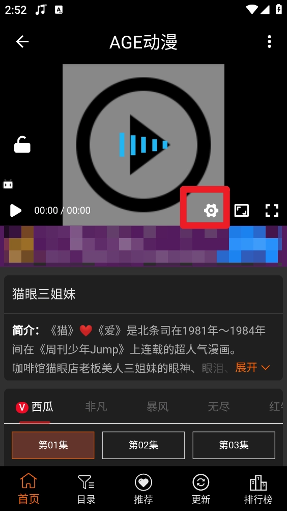 4、在播放详情页点击"设置"图标。