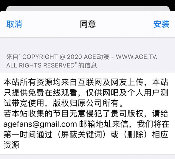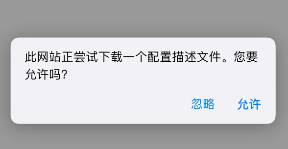 5、同意免责声明,安装描述文件。