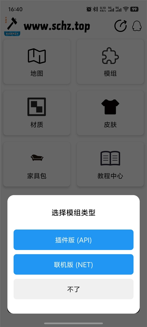 2、随后选择模组类型,该功能支持插件版(API)与联机版(NET)两种选项。