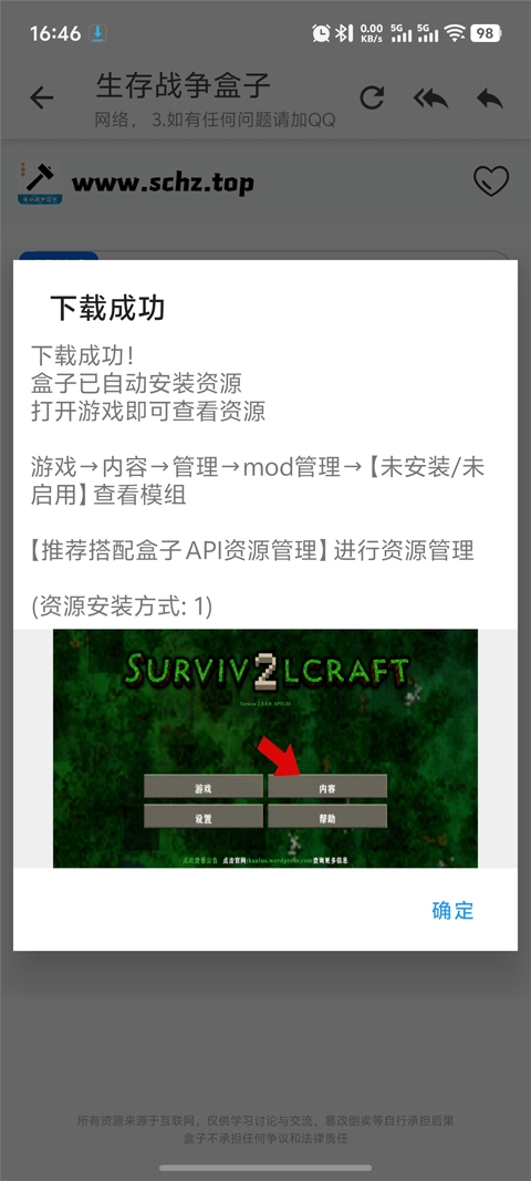 6、完成后后打开生存战争,点击内容;