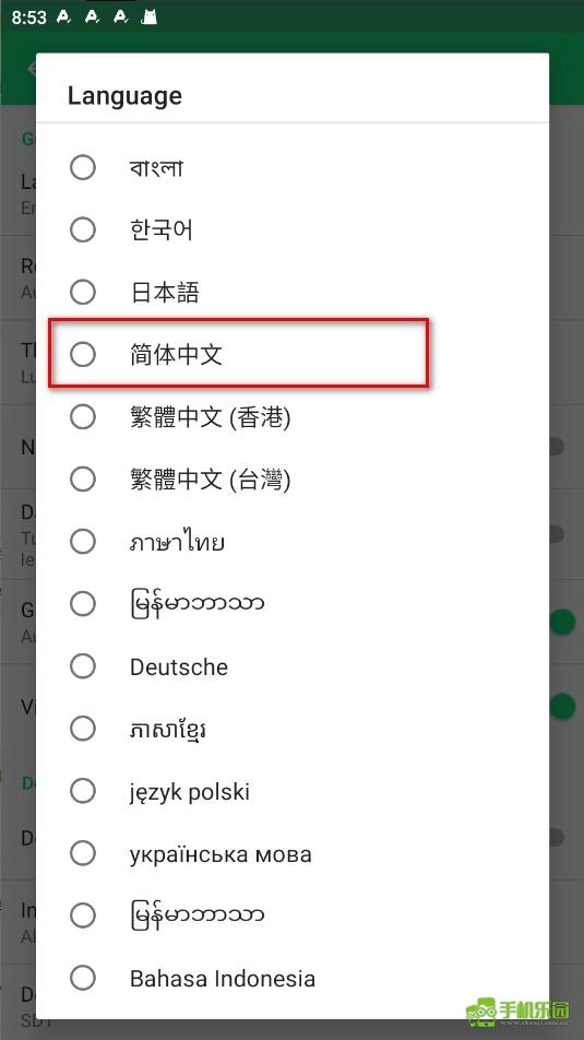 4、往下翻就可以看到简体中文,选择即可。