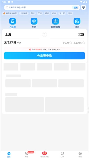 2、配备智能抢票功能,系统一旦监测到火车票余票,便会立即弹窗提醒用户进行抢购,从而提升购票的成功率。