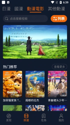 2. 轻点顶部栏目,就能迅速切换动漫类型。