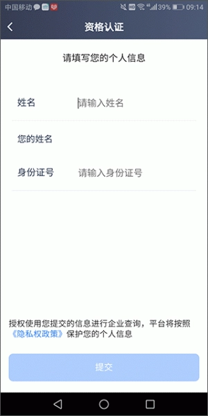 2、填写身份证信息进行身份确认