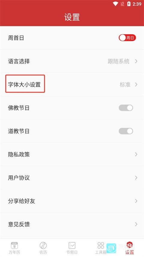 以上就是桔子万年历字体设置介绍,希望对用户有所帮助!