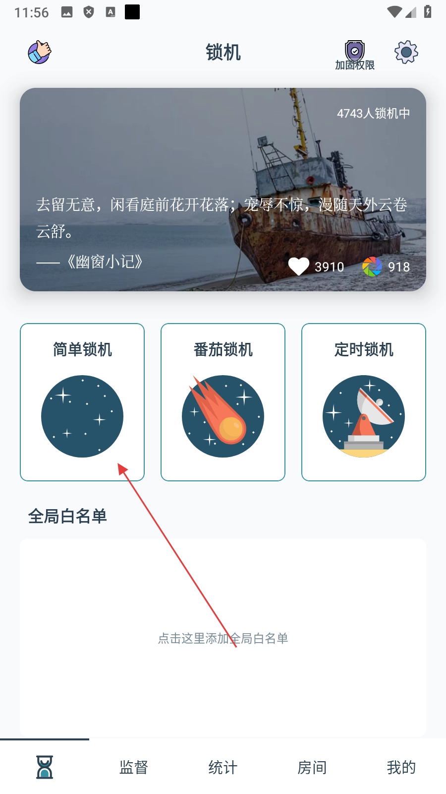 3、房间功能支持志同道合的用户在同一空间内相互查看彼此的动态,比如锁机时间、应用打开记录等信息;同时可通过设置密码来保障隐私安全,比较适合同伴之间共同监督学习进度。