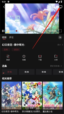 2、在动漫播放页面点击右上角的投屏按钮;