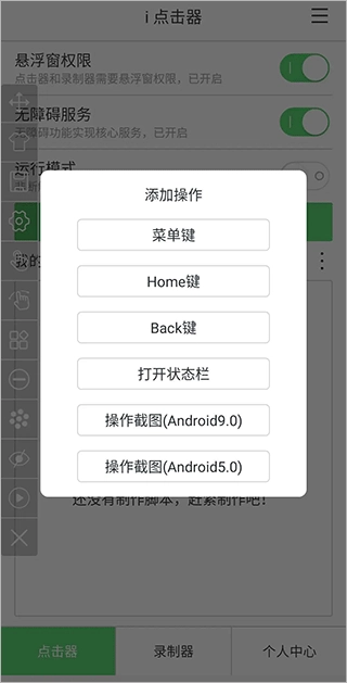 3、个性化功能支持:点击标记偏移区域显示、指针位置显示、工具条可隐藏、点击器工具条定制、多脚本悬浮运行、脚本合并、多脚本悬浮单脚本运行、多脚本悬浮顺序运行、长按删除动作、脚本分享与导入。