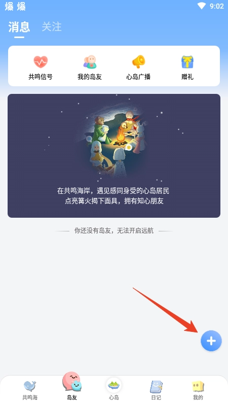 1、打开心岛日记,点击下方【岛友】,再点击【+】