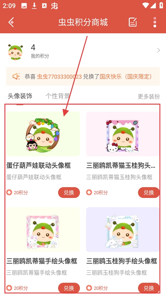 进入积分商城后,你会看到头像框等各类可兑换的商品,挑选出你喜欢的商品,点击进入它的详情页面就可以啦。