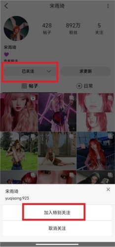 方法二:点击博主的头像进入其个人主页,先关注该博主,接着再次点击“已关注”按钮,随后选择“加入特别关注”选项。