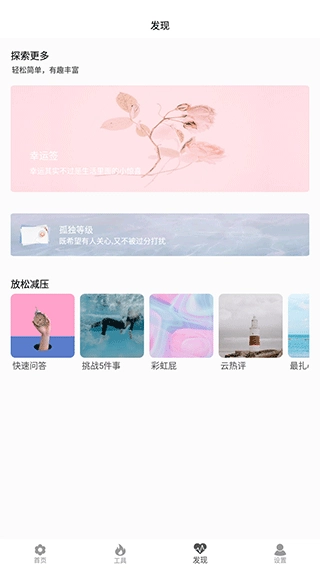 点击底部的“发现”按钮,就能看到快速问答、彩虹屁、云热评等功能选项供你选择。