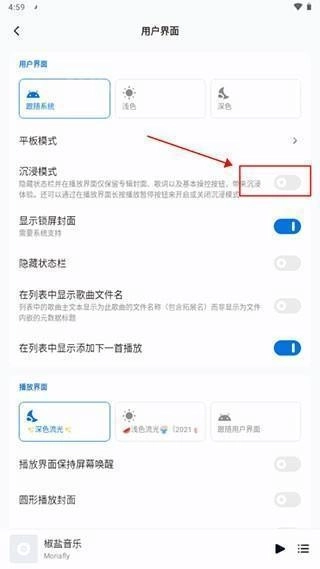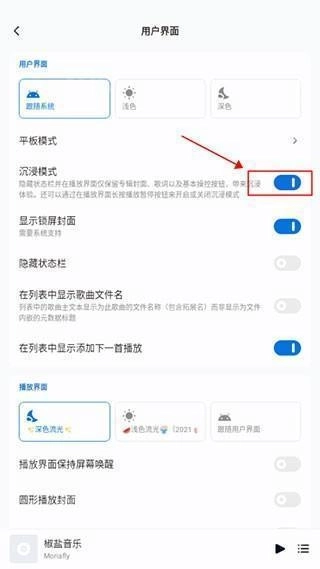 在用户界面设置里,找到沉浸模式选项,点击它右侧的开关按钮,具体操作可参考图示: