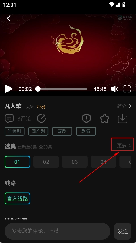 6.播放界面,点击更多可以选集。