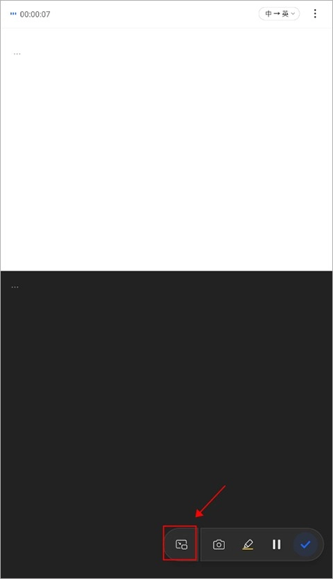 3、点击下方的“悬浮字幕”按钮后,转写翻译的文字会自动缩小成“悬浮字幕”框。