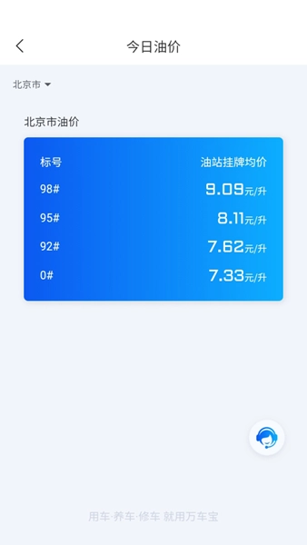 4. 在【今日油价】界面可以查看当前的油价信息。