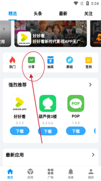 软件投稿:点击首页的分享进入点击+号上传投稿应用!