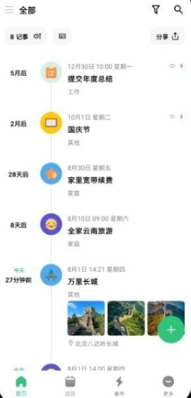 -事件管理:清晰的事件分类与排序,让您对生活中的大小事务了如指掌。