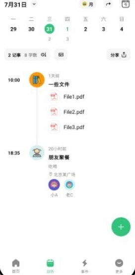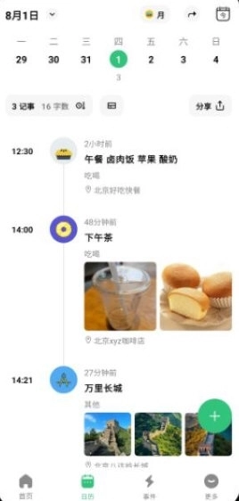 日历:按天浏览记录项,左右滑动切换日期,以时间线方式呈现每一天的记录。