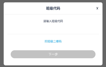 2、在弹出窗口中,即可输入班级代码,也可通过老师提供的扫码二维码加入班级。