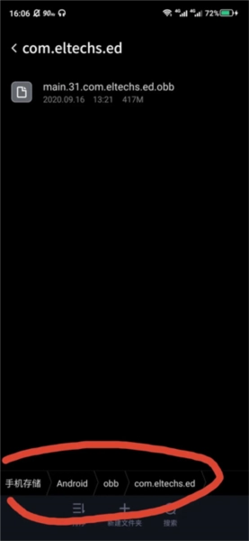 6、把数据包main.31.com.eltechs.ed.obb移动或者复制到Android→obb→com.eltechs.ed文件夹。