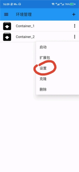 11、选择一个环境管理点击左边的三点选择设置