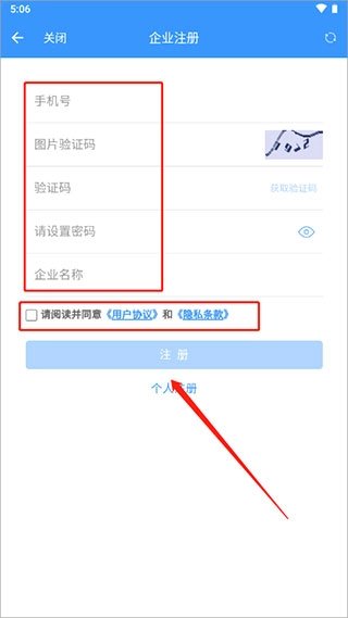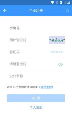 3、企业用户注册需要填写手机号进行验证后设置密码,填写企业名称进行注册。